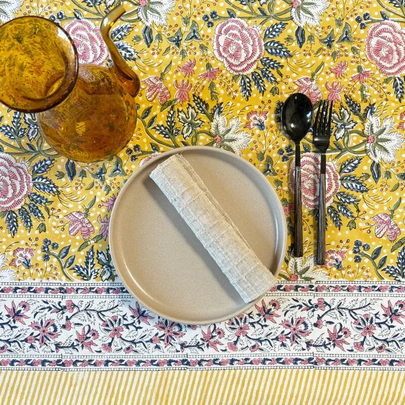 The Couleur Nature collection of elegant table linens is designed to reflect the idyllic landscapes, sumptuous colors, and natural beauty of Southern France. They bring a Provençal sense of effortless beauty, rich color, and joie de vivre to your life and home — no matter where you live. Their original designs are carefully crafted in Paris before being hand-printed by skilled artisans in Jaipur, India. Not only do these vibrant products enliven any home or table, they also provide living wages and benefits for the artisans who make them.